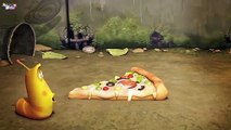 watch the cartoon video of mike enjoying by eating the pizza