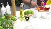 La Cocina del Cinco - Ensalada Caprese, Camarones Asados, Conserva de Pimientos Rojos, Vino de Limón y Fresas