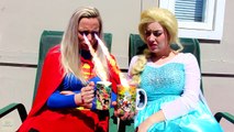 * Frozen Elsa Flies w/ Superman, Spiderman, Pink Spidergirl, Doctor & Joker Prank Superhero Fun Videos \r