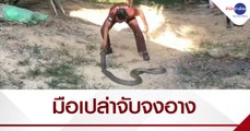 อึ้ง! มือเปล่าจับงูจงอางยาว 3 เมตรครึ่ง