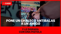 Pone un chaleco antibalas a un amigo y le dispara con una pistola
