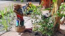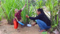 SokYaa Help Mother Cutting Sugarcane At Farm And Eat Very Well