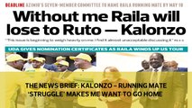 The News Brief: Kalonzo - Running mate 'struggle' makes me want to go home
