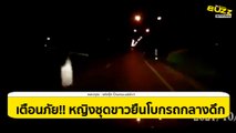 คลิปอย่าหาทำ ชวนสยอง หญิงแต่งชุดขาว มายืนกลางถนน โบกรถกลางดึก
