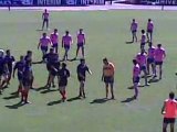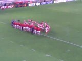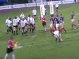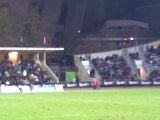 Jeudi 7 octobre 2010; stade Charléty Première journée de l'Amlin Challenge Cup 2010-2011. Stade Français Paris (France) - Crociaty Rugby (Italie). Vue depuis les tribunes, les actions qui mènent au dernier essai Parisien, aplati par le demi de mêlée remplaçant Benjamin Tardy. Score Final: 57 - 6 (9 essais à rien bonus offensif pour Paris).