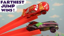 Hot Wheels Farthest Jump Wins with Disney Cars 3 Lightning McQueen versus Funny Funlings and Marvel Avengers with the PJ Masks in this Family Friendly Full Episode English Toy story for Kids