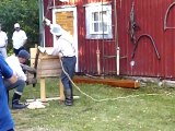 Nyt oli tämänkin tapahtuma ja tällä kertaa oli vuorossa työnäytös jonka aihe oli, jyvien putsaaminen viskuumyllyllä ja jauhaminen käsikivillä