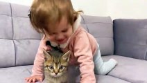 Cute Baby Meets New Baby Kitten for the First Time!