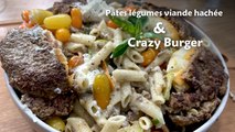 Penne aux légumes et viande hachée, Crasy burger - بلومة باللحم المفروم والخضار، هامبرغر