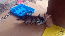Anak-anak kucing ini dirakam berkumpul di atas meja tatkala sabar menunggu makanan disediakan oleh tuannya.