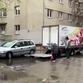 Ils aident cette vieille dame à rejoindre sa voiture sans se mouiller les pieds !