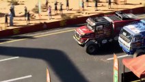 Intense off-road truck racing action