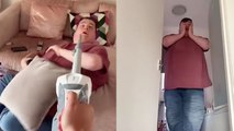 00:32Were you just trying to hit me with that hammer?