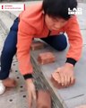 Lad smashes 50 bricks in 40 seconds with his bare hands!
