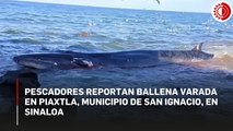 Ballena varada en estero de San Ignacio, Sinaloa; sufre lesiones por golpes contra rocas