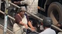Kerala में फुटपाथ पर चढ़ी स्कूटी, महिला ने सिखाया सबक