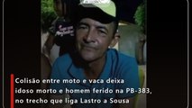 Colisão entre moto e vaca deixa idoso morto e homem ferido na PB-383, no trecho que liga Lastro a Sousa