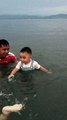 Relaxing at the Shore with Isaiah and nanay Janet Watching the Net Menders πβ