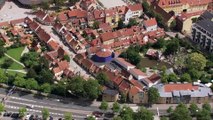 19:03Από ψηλά, η πόλη μοιάζει με ένα μοσαϊκό από κόκκινες και λευκές στέγες και τις ευθείες γραμμές των δρόμων.