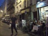 Fête de la musique 2008, les Jacqueline Maillan en concert rue Beauregard. Etienne(chant et accordéon), Jef et Gilles(guitare) et Marianne (flûte), interprètent "Tes fesses"