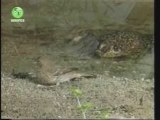 crapaud attaque et mange un oiseau