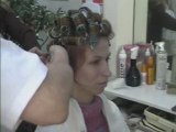 Voici pour cette vidéo, une jeune anglaise, qui subit le montage d'une mise en plis avec des rouleux cage. Le montage est réalisé par un coiffeur qui montre la façon de procéder..avant le coiffage, la chevelure de la jeune fille a été enduite d'un baume de coiffage