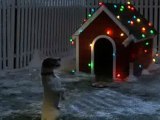 Cagnoloni giocherelloni si slittano sulla neve