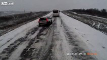 Hellish winter road in Russia