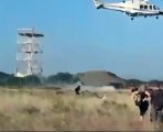 Elicottero durante protesta antimilitarista a Decimomannu