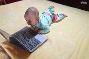 7 month baby playing with laptop