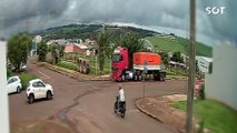Câmera flagra colisão violenta entre carro e motocicleta no Cascavel Velho