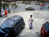Conductor atropella a delincuentes en motocicleta y todo queda en vídeo