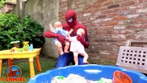 Spiderman POOL PRANKS! w FROZEN ELSA SPIDERGIRL Swimming Pool SURPRISE Fun Prin