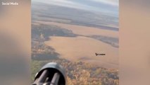 Ukrainian helicopter gunner blasts Russian drone out of the sky with minigun