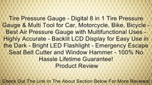 Tire Pressure Gauge - Digital 8 in 1 Tire Pressure Gauge & Multi Tool for Car, Motorcycle, Bike, Bicycle - Best Air Pressure Gauge with Multifunctional Uses - Highly Accurate - Backlit LCD Display for Easy Use in the Dark - Bright LED Flashlight - Emergen