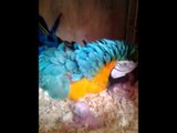 اطعام صغار المكاو الازرق