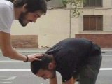 spanish guy jump over a moving car , amazing