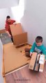 🔥 DIY CARDBOARD SLIDE – SAFE & FUN PLAYTIME! 🎢🛷 #funny #parenthack #diyideas