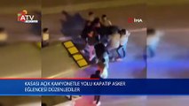 Kasası açık kamyonetle yolu kapatıp asker eğlencesi düzenlediler
