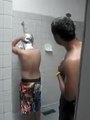 funny bathroom -creazy friend can"t stop waching shampione