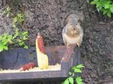 Squirrel on bird feeder