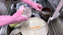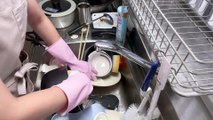 Laver la vaisselle avec des gants en caoutchouc