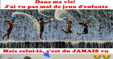Très drôle combat entre un gamin et un coq!
