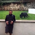 Un homme entre dans un enclos et prend le risque de tourner le dos à un jaguar