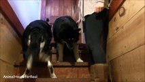 Alaskan Malamute Mom shows her puppy how to go downstairs-sPH1-ESMqvE