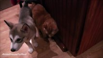 Cat and Alaskan Husky Puppy Holding Paws-VBwrtCN-hHA