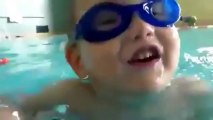 طفل ذو ثلاث سنوات يغطس ويلتقط شيئا تحت الماء مثلما يفعل الكبار