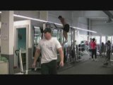 Muscle ups on chin bar