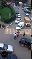 Brutal Savaje Street fight on Russia after one of drivers tries to make drift in the middle of street