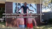 Powerful Teen Musclemen and Giant Lift and Carry with small fan!
